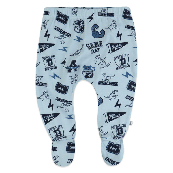 3-Pack Organic Cotton Footed Pants, Dino Prep Academy Blue